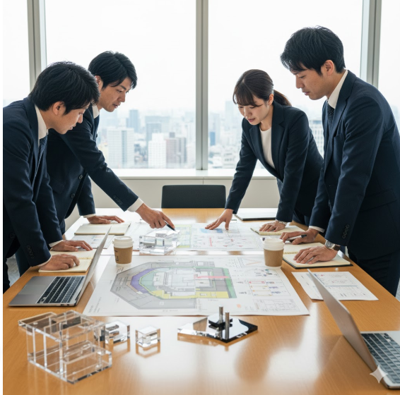 • 説明担当(プレゼンター): ブース内に誘導した来場者に対し、デモや展示パネルを使って製品説明を行う役割。課題をヒアリングし、解決策を提示します。
