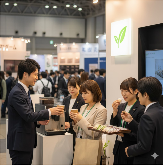 広い会場を歩き疲れた来場者にとって、温かい飲み物は非常に価値が高く、企業イメージの向上に直結します。