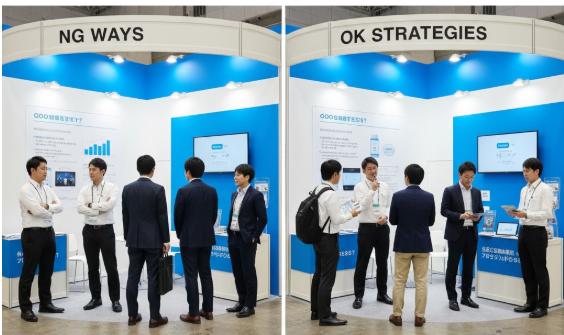 まず、やってはいけないNG行動(=来場者が最も入りにくいブース)を確認しましょう。